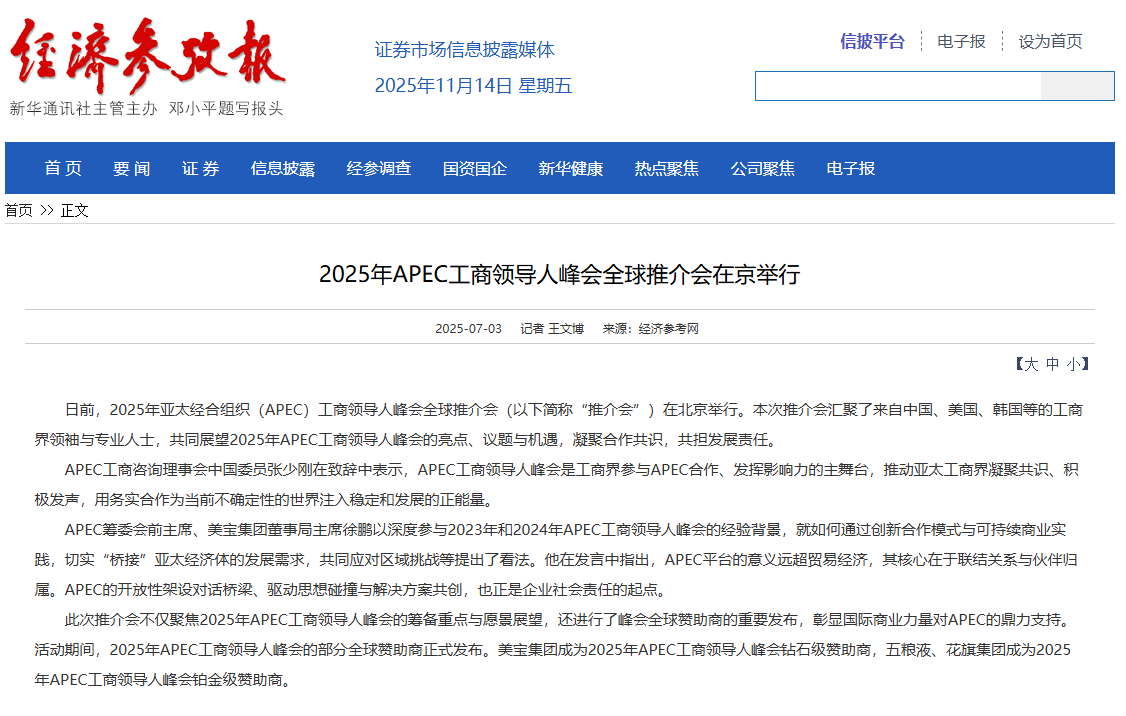 經(jīng)濟(jì)參考網(wǎng):2025年APEC工商領(lǐng)導(dǎo)人峰會全球推介會在京舉行