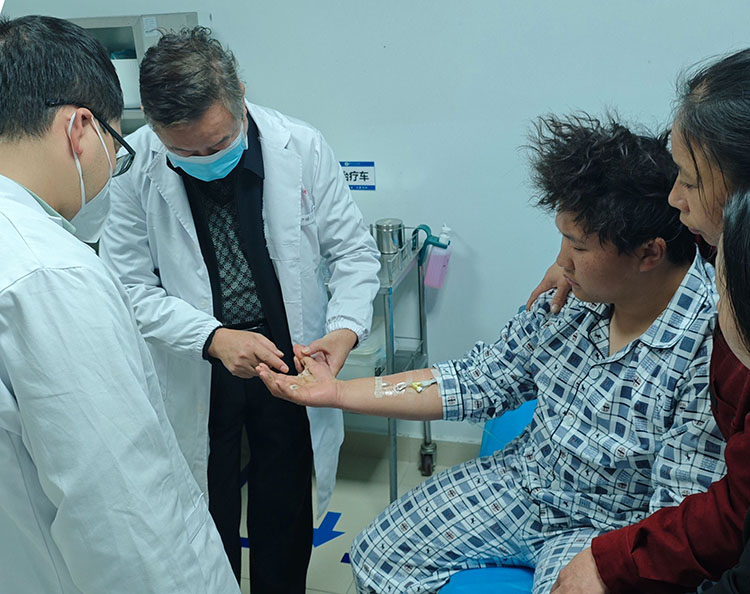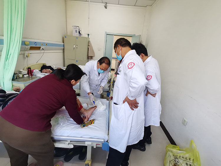 張強主任在英山縣人民醫(yī)院指導(dǎo)電擊傷患者治療