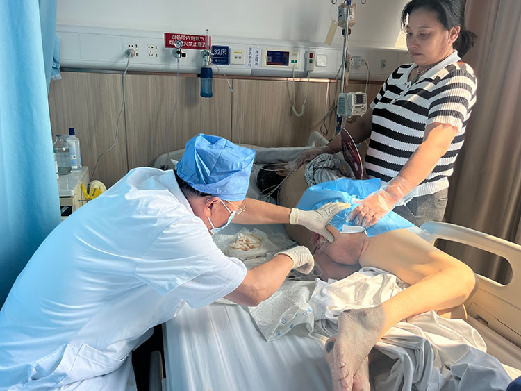 9月5日,中國中西醫(yī)結(jié)合學(xué)會燒傷專業(yè)委員會常務(wù)委員、《中國燒傷創(chuàng)瘍雜志》副總編輯王洪生主任到廣東揭陽惠來縣人民醫(yī)院分別會診了糖足,壓瘡,燒傷病人合計8位患者,并親自示范規(guī)范換藥并詳細講解下一步治療方案和注意事項。