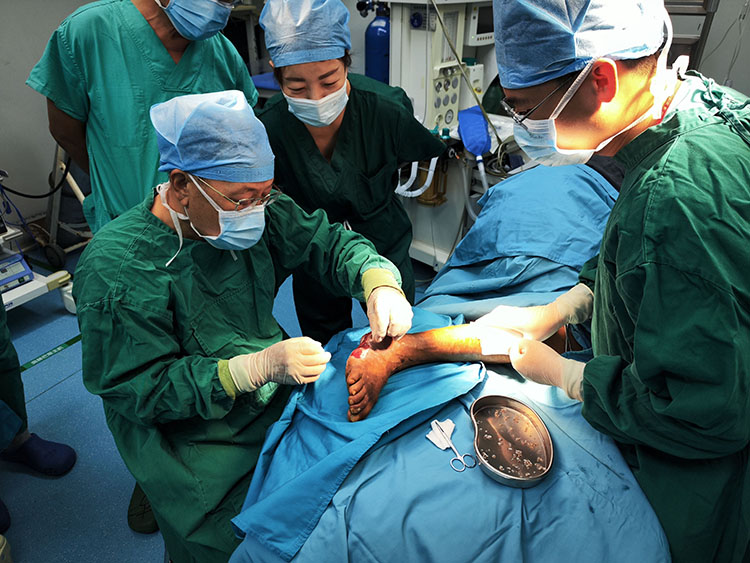 9月11日,應(yīng)廊坊市安次區(qū)醫(yī)院外科邀請,《中國燒傷創(chuàng)瘍雜志》常務(wù)編委、燒傷創(chuàng)瘍再生醫(yī)療技術(shù)臨床專家趙瑞慶,為一例四級糖尿病足合并下肢血管閉塞患者行皮簇種植術(shù),術(shù)中順利出血不多,病人安返病區(qū),得到了患者和主治醫(yī)生的感謝和贊揚。
