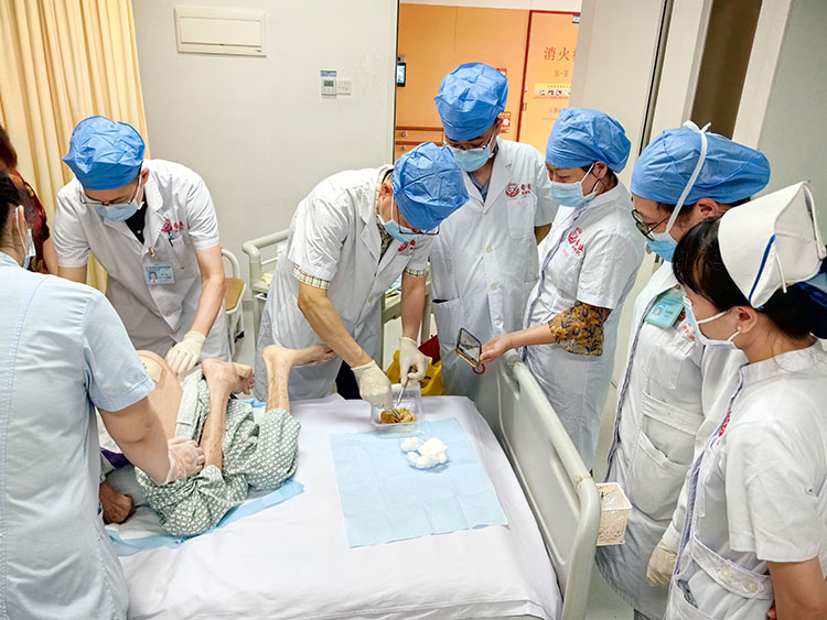 2025年7月8日,中國(guó)燒傷創(chuàng)瘍雜志編委,燒傷創(chuàng)瘍?cè)偕t(yī)療技術(shù)臨床專家張強(qiáng),應(yīng)邀前往鳳陽縣人民醫(yī)院,對(duì)一例40%多的大面積燒傷病人和一例糖尿病足患者進(jìn)行臨床會(huì)診,張強(qiáng)主任親自示范再生醫(yī)療技術(shù)創(chuàng)面清創(chuàng)換藥流程,強(qiáng)調(diào)了換藥過程中的注意事項(xiàng),并與蔣主任交流了綜合治療方案,再生醫(yī)療技術(shù)是中西醫(yī)結(jié)合創(chuàng)面治療的典范,其推廣應(yīng)用將極大造福燒傷及慢性創(chuàng)面患者。