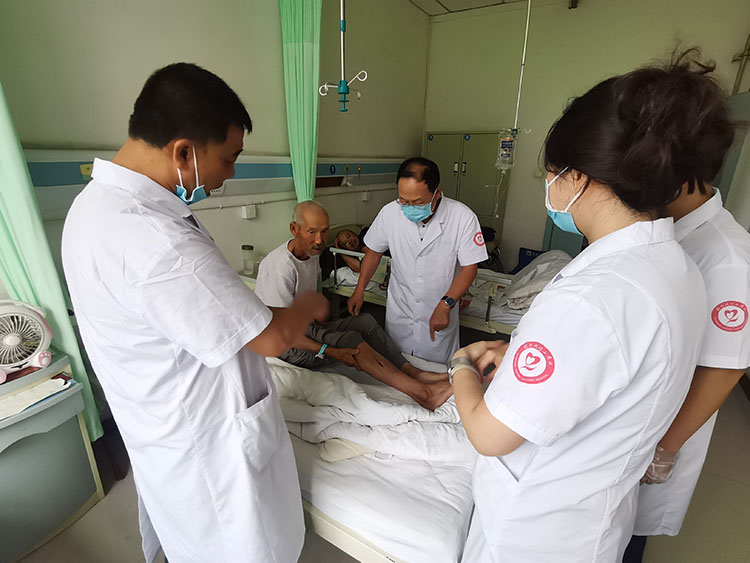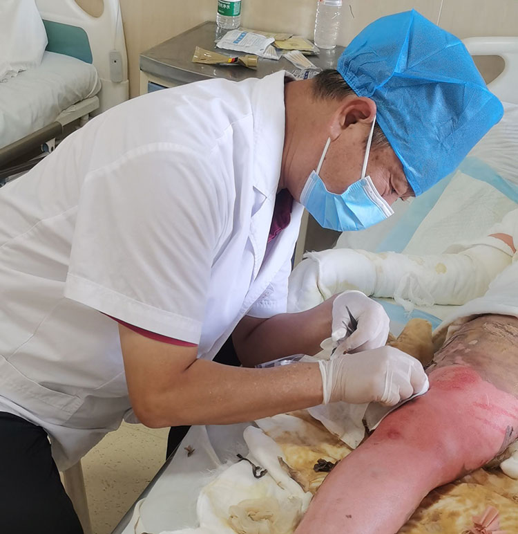 8月28日,《中國(guó)燒傷創(chuàng)瘍雜志》常務(wù)編委、燒傷創(chuàng)瘍?cè)偕t(yī)療技術(shù)臨床專家趙瑞慶,在該醫(yī)院會(huì)診了9例慢瘡患者(糖足潰瘍2例,壓瘡4例,會(huì)陰部深筋膜感染1例,臀部深筋膜感染1例,下肢外固定皮膚感染1例),并針對(duì)每例患者制定出個(gè)性化的治療方法,受到當(dāng)?shù)蒯t(yī)務(wù)人員及家屬的熱情稱贊。